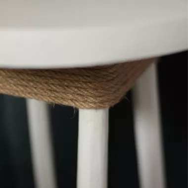 Le contraste entre la structure blanche, l’élégance des formes et la touche brute de la corde rend ce meuble à la fois contemporain et chargé de caractère artisanal.